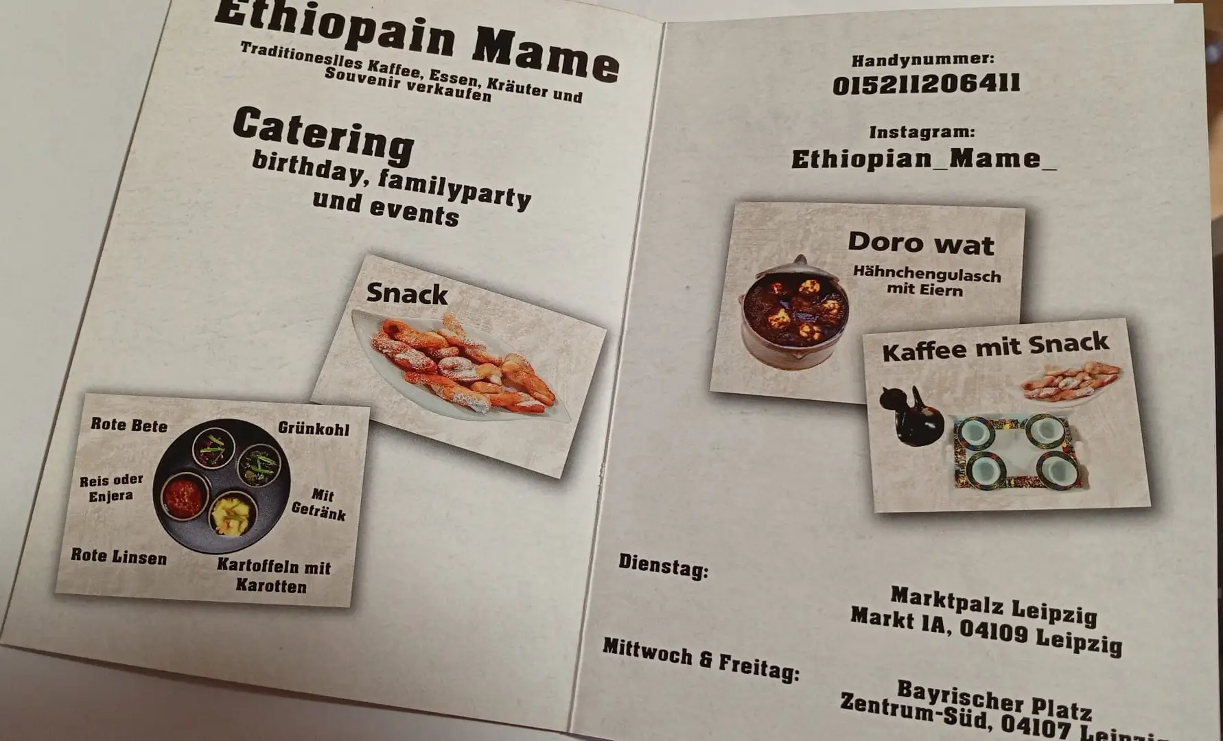 Ethiopian Mame bringt die authentischen Aromen Äthiopiens direkt nach Leipzig. Hier erleben Gäste traditionelles Kaffeezeremoniell, hausgemachte Speisen sowie ausgewählte Kräuter und Souvenirs aus Äthiopien. Wer echtes äthiopisches Essen in Leipzig sucht, findet bei Ethiopian Mame eine einzigartige Kombination aus Genuss, Kultur und Gastfreundschaft.
