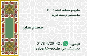Wer auf der Suche nach einem beeidigten Übersetzer in Deutschland ist, findet in Hossam Saber einen kompetenten Ansprechpartner, der professionelle, beglaubigte Übersetzungen zuverlässig und termingerecht liefert.